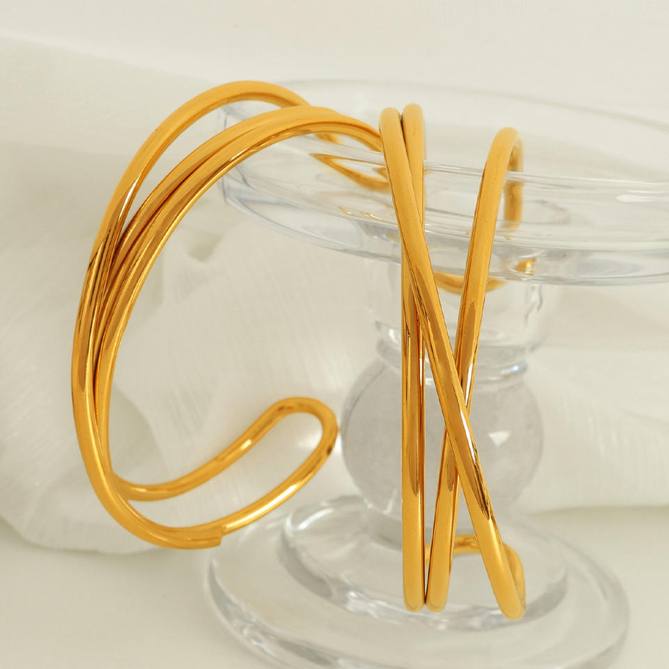 Brazalete de Moda con Forma de Cruz, Diseño Abierto de Acero de Titanio, Joyería para Mujer en Color Plata y Oro