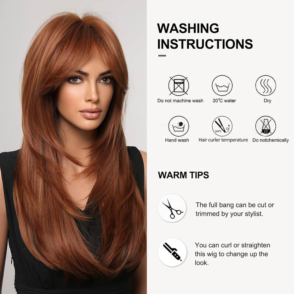 Peluca Rubia de moda con raíces oscuras, postizo sintético recto de capas largas para mujeres, fibra suave saludable, fácil de cobre marrón