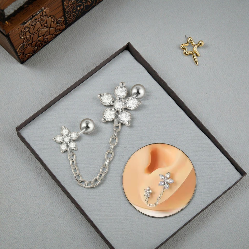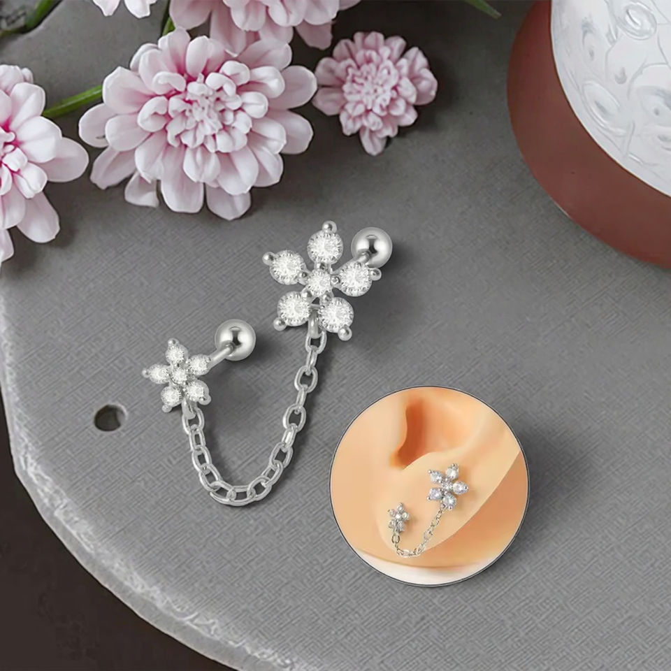 Joyería de moda para el cuerpo con cadena Helix Piercing Tragus Stud Pendientes Corazón Mariposa Daith Cartílago Venta caliente Piercing para la oreja