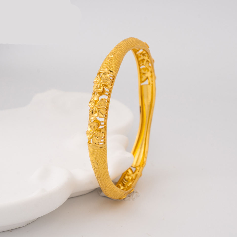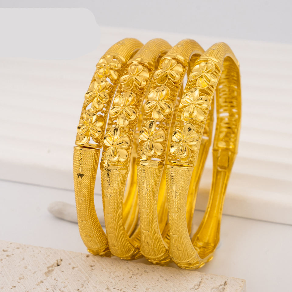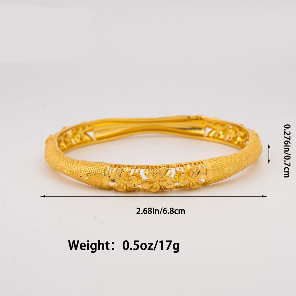 Brazaletes de novias a la moda, joyería para mujer, flor ahuecada, brazaletes chapados en oro de Arabia Saudita 24K, venta al por mayor