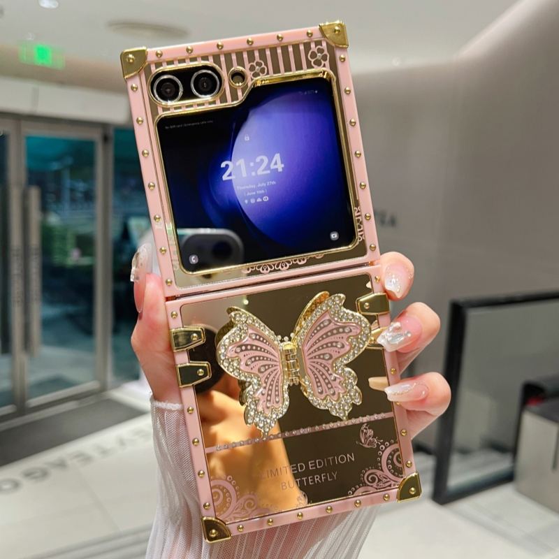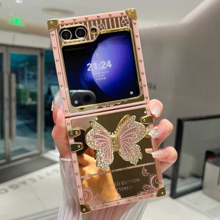 Funda Protectora para Móvil con Diseño de Mariposa para Samsung Galaxy Z Flip 7 6 5 4 ZFlip 3, con Soporte de Diamantes, Antigolpes