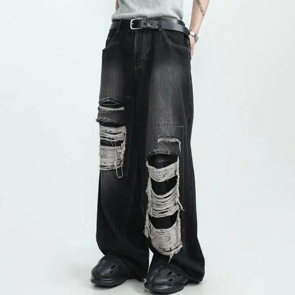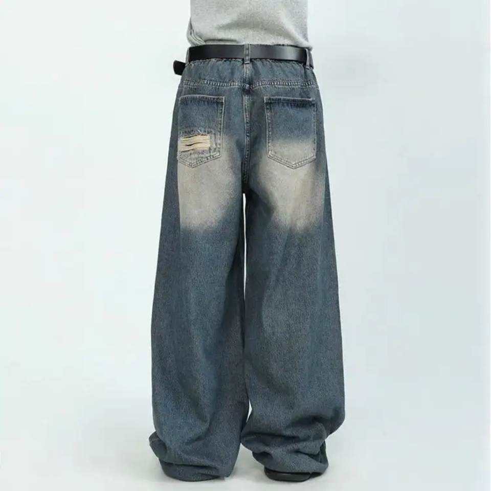 Pantalones Vaqueros Casuales de Moda para Hombre, Vaqueros Holgados Rectos Lavados de Alta Calidad, Estilo Vintage, Vaqueros Desgastados de Mezclilla para Calle