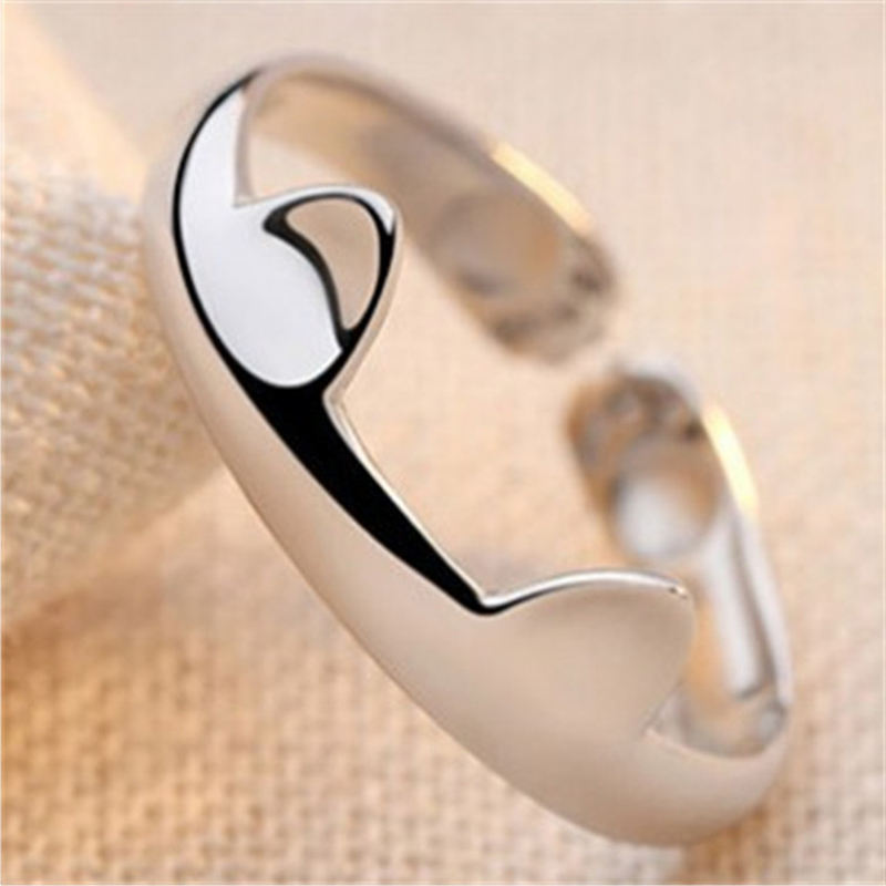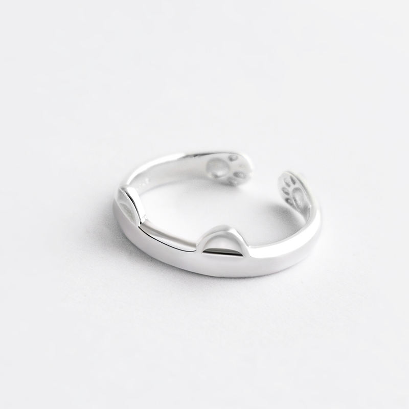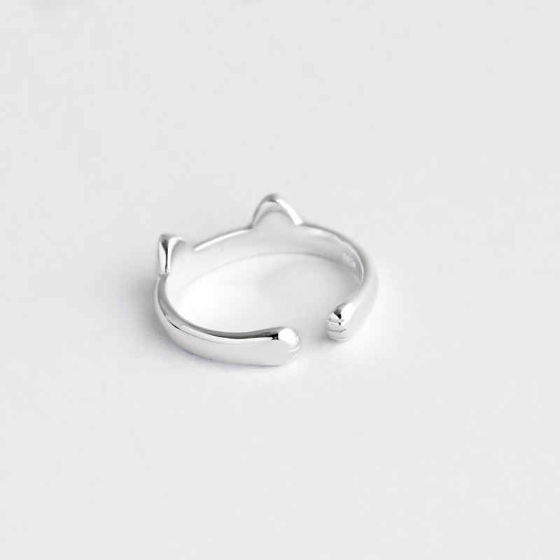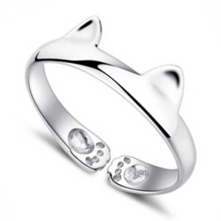 Anillo de Orejas de Gato de Moda, Anillos de Gato Plateados, Anillo de Gatita Blanca