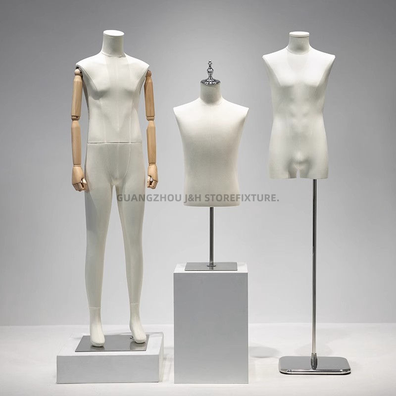 Ropa de moda para modista, maniquí sin rostro para mujer, ropa de cuerpo completo, brazos articulados de lino, maniquí de pie envuelto en tela masculina