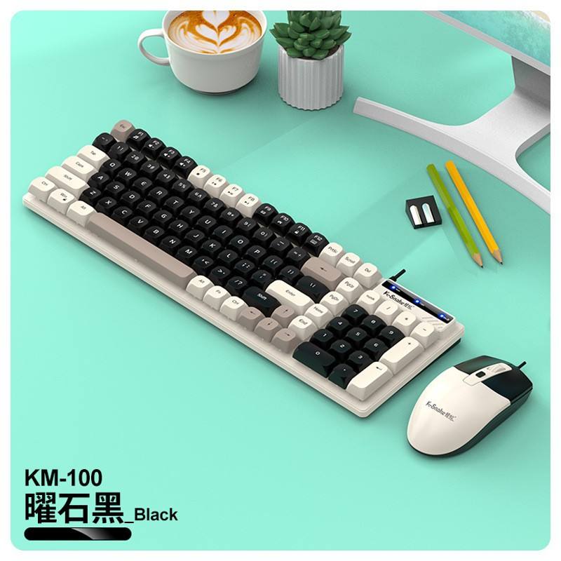 Combo de Teclado y Ratón con Cable, Diseño Color Block, Sensación Mecánica, USB, para Juegos y Oficina, para Computadora Portátil