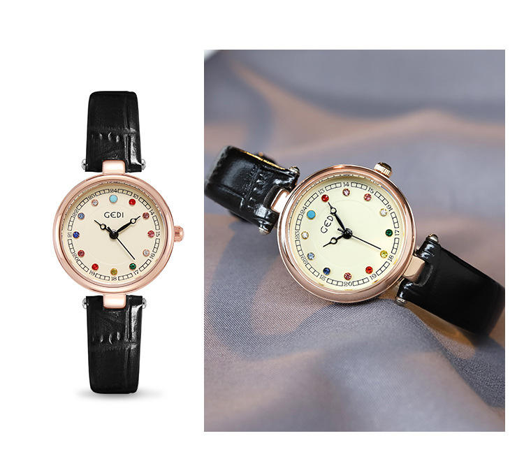 Moda colorido diamante estudiante reloj nicho de gama alta correa de cuero reloj de cuarzo para mujer al por mayor