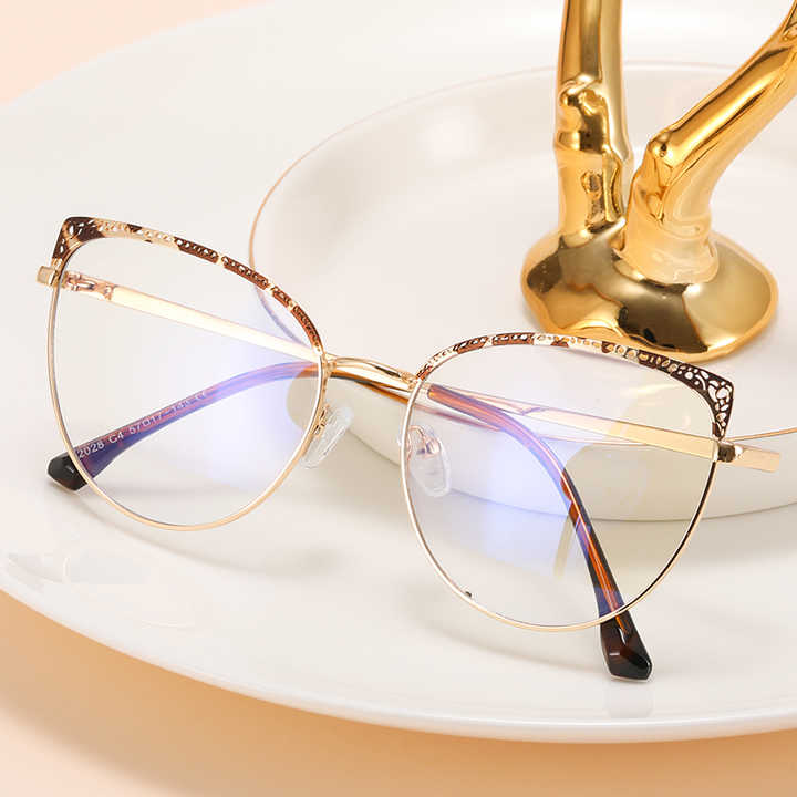 Gafas de aleación de lectura con filtro de luz azul para mujer, anteojos para presbicia femeninos, montura de ojo de gato ahuecada única, a la moda, 82028