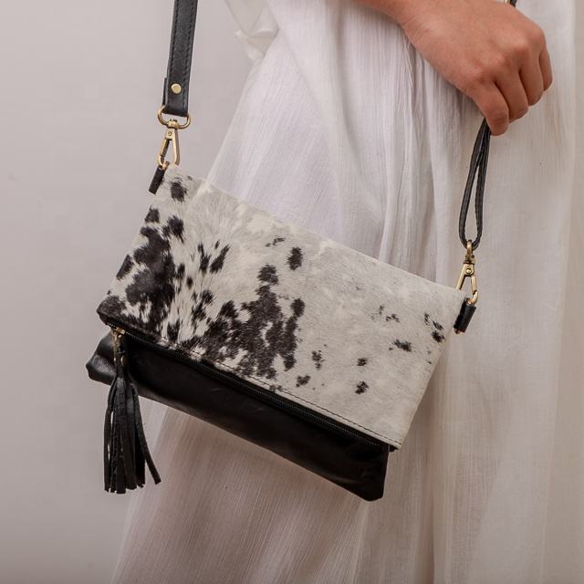 Moda pelo de vaca en ocultar 100% cuero genuino hombro Cruz cuerpo último estilo en línea Sling monedero bolsos hechos a mano por Venus textil