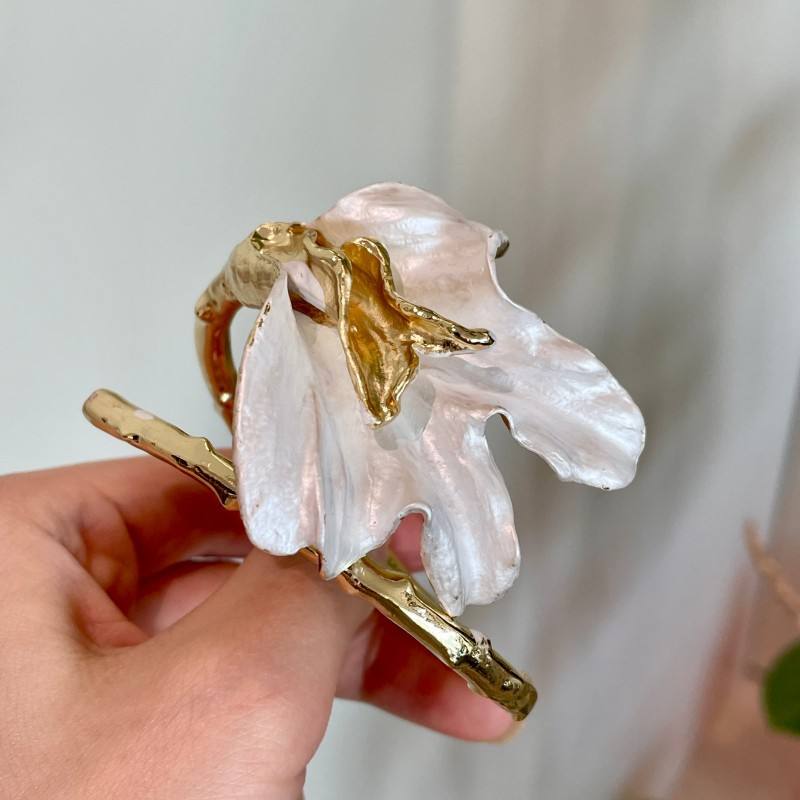 Pulseras de Moda con Diseño de Flor de Concha Blanca, Chapadas en Oro, de Aleación de Zinc, Regalo Romántico para Mujer 2026