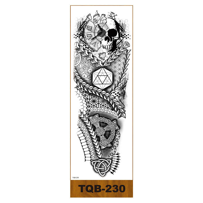 Tatuajes Temporales de Papel Negro con Transferencia de Agua, Diseño de Calavera y Rosa, Estilo Saintking War, para Hombre