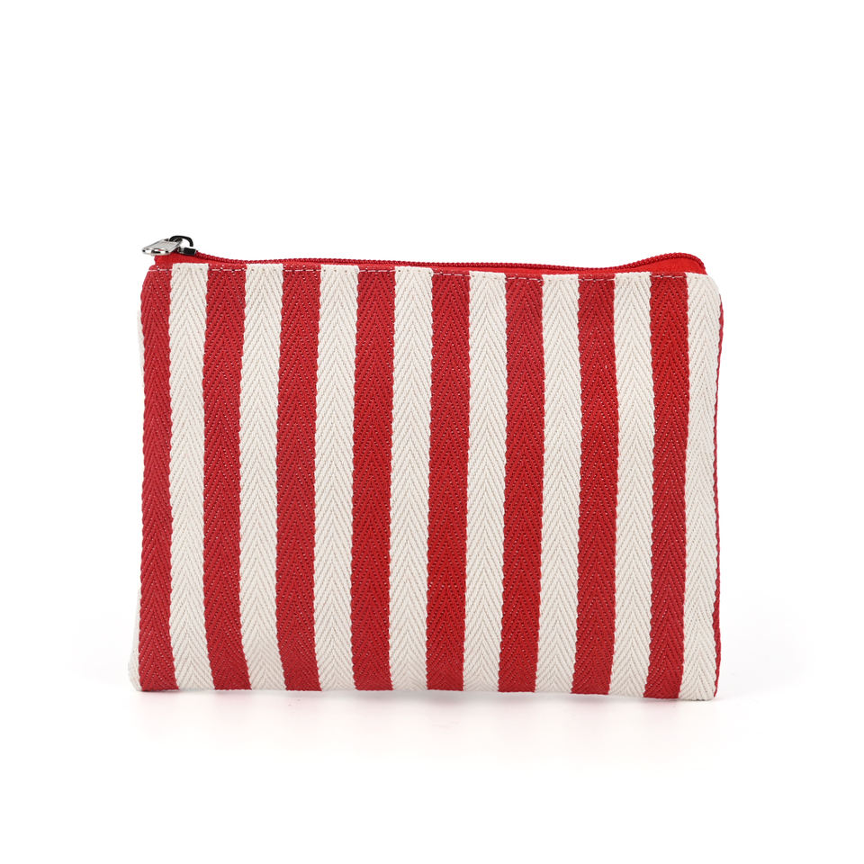 Bolsa de Maquillaje de Lona con Cierre, Personalizada con Logotipo, Colorida, con Rayas Rojas, para Cosméticos, Artículos de Aseo, para Viajes y Uso Diario
