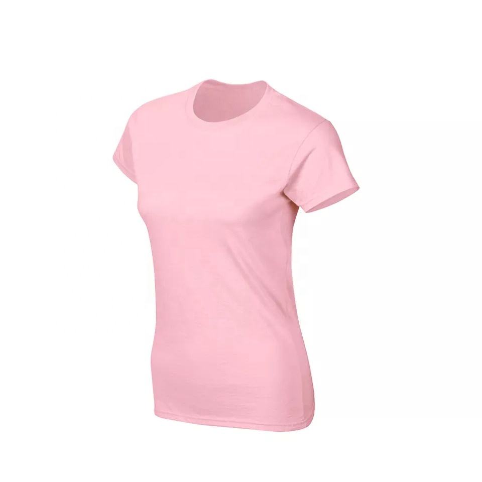Camiseta con estampado de logotipo personalizado para mujer, Camiseta lisa de manga corta de 100% algodón, 180gsm, cuello redondo, color blanco