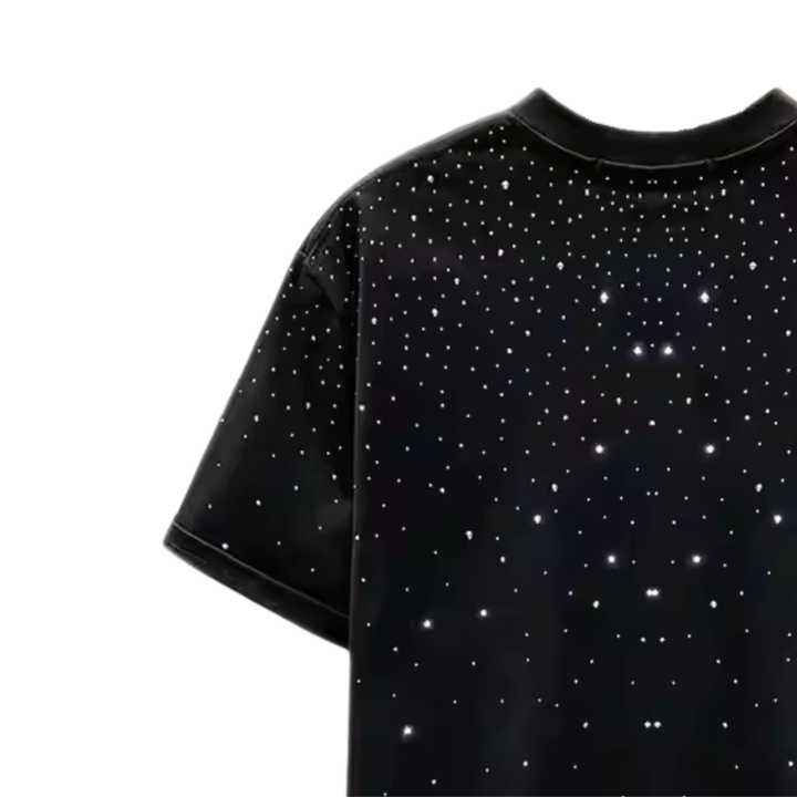 Camiseta de Verano Personalizada de Moda para Mujer con Pedrería, Color Sólido, Manga Corta, Cuello Redondo, Transpirable, de Algodón, Ropa Urbana