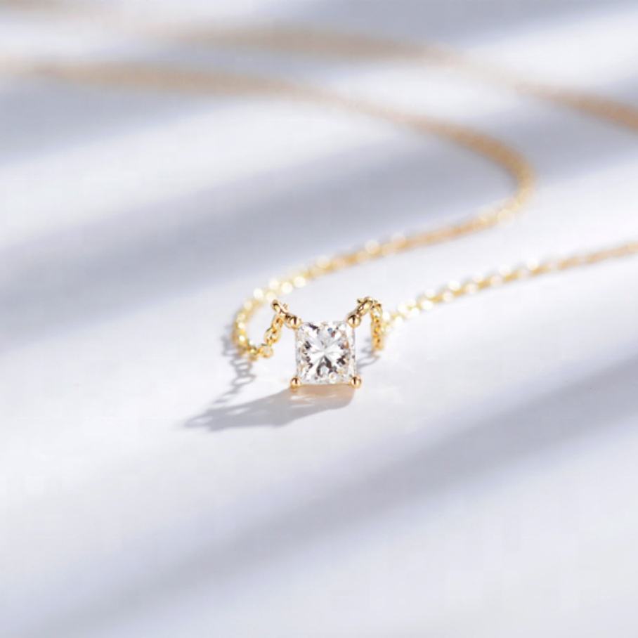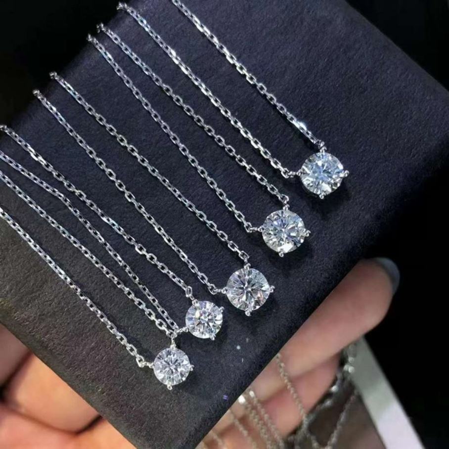 Nombre:Collar con Colgante Solitario de Oro Blanco de 14K con Diamante Moissanita