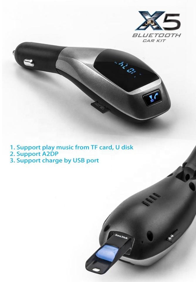 De diseño de moda BT Kit de coche Mp3 transmisor FM REPRODUCTOR DE X5 TF USB manos libres inalámbrico