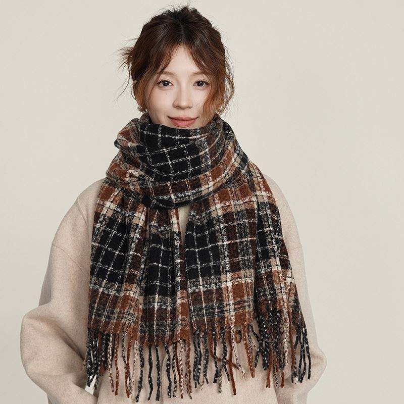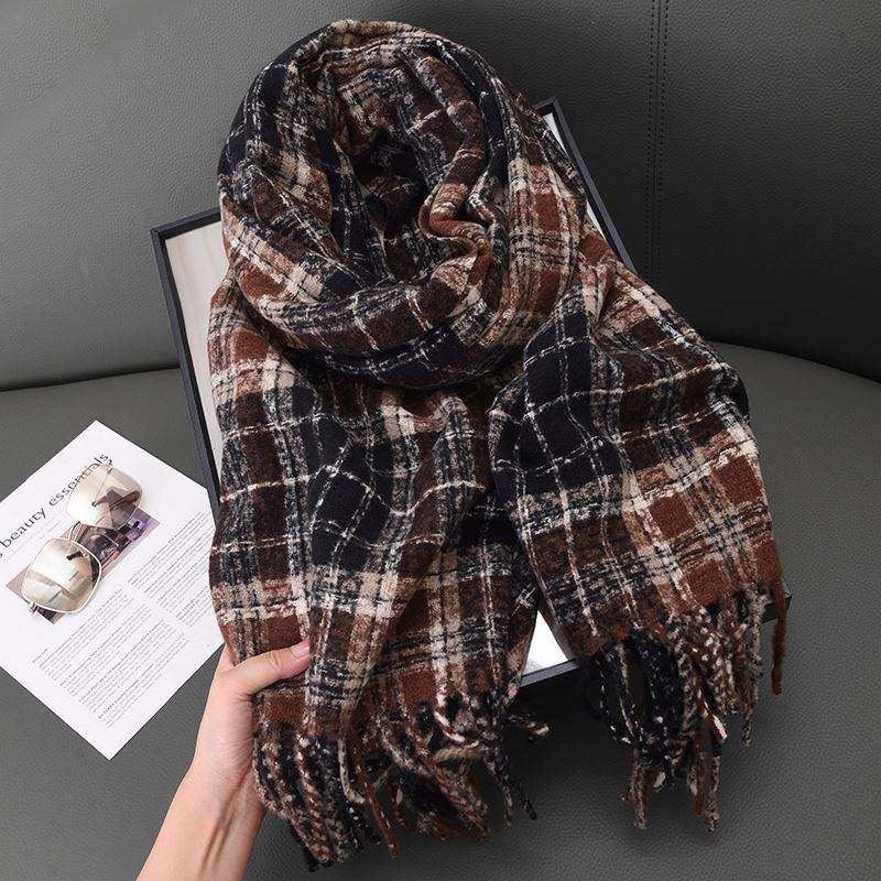 Chal Largo y Suave con Diseño de Moda, Tipo Cachemira, a Cuadros, para Mujer, con Borlas, YHK0055