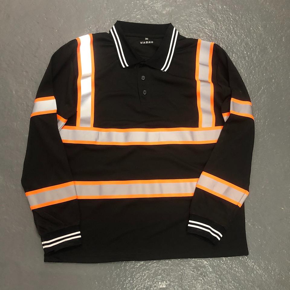 Camisa de Seguridad de Manga Larga con Diseño de Moda para Trabajos de Construcción, Color Negro y Naranja Reflectante