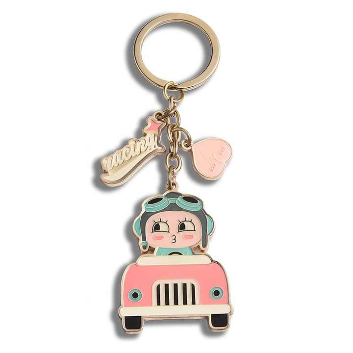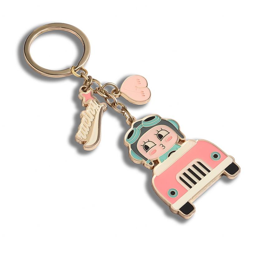 Llavero de Metal Esmaltado Duro con Diseño de Moda, Color Rosa y Baño de Oro