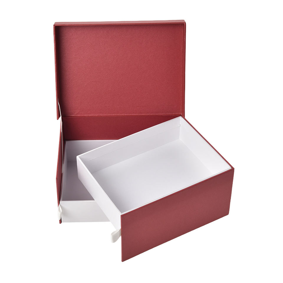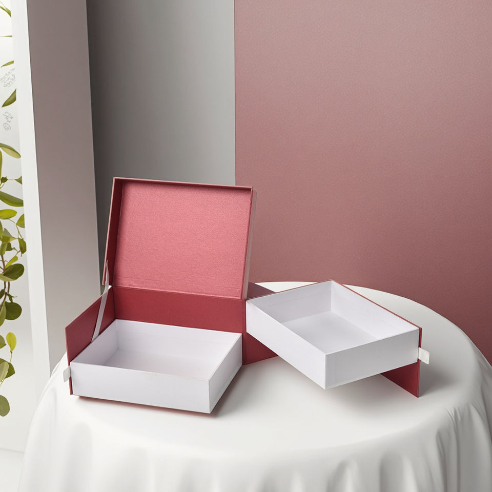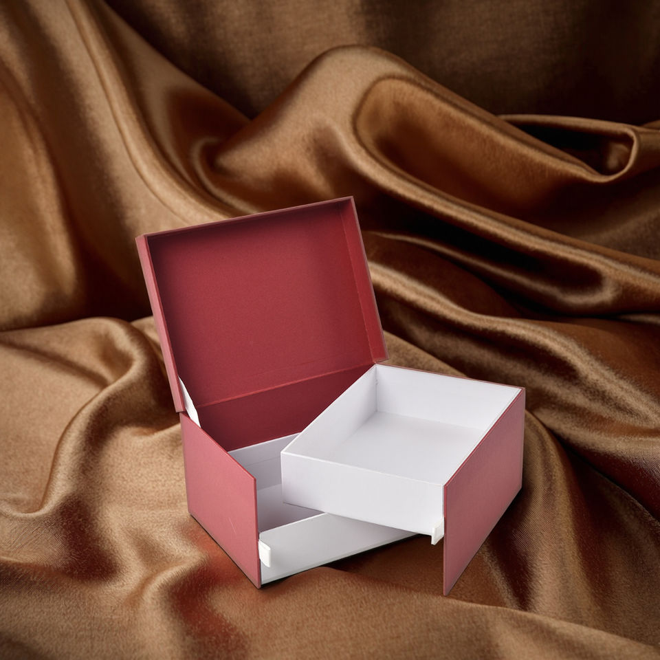 Caja de Joyería Cuadrada de Diseño Moderno con 2 Cajones Giratorios y Cierre Magnético, Color Rojo Vino/Blanco, Organizador de Cosméticos, Cajas de Regalo