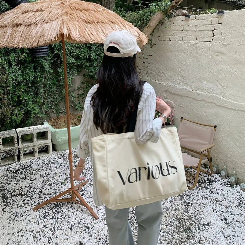 Bolso de Hombro Grande a Rayas para Mujer, Diseño de Moda, Algodón Natural Resistente, Cierre con Cordones, Bolso de Lona para Estudiantes 05