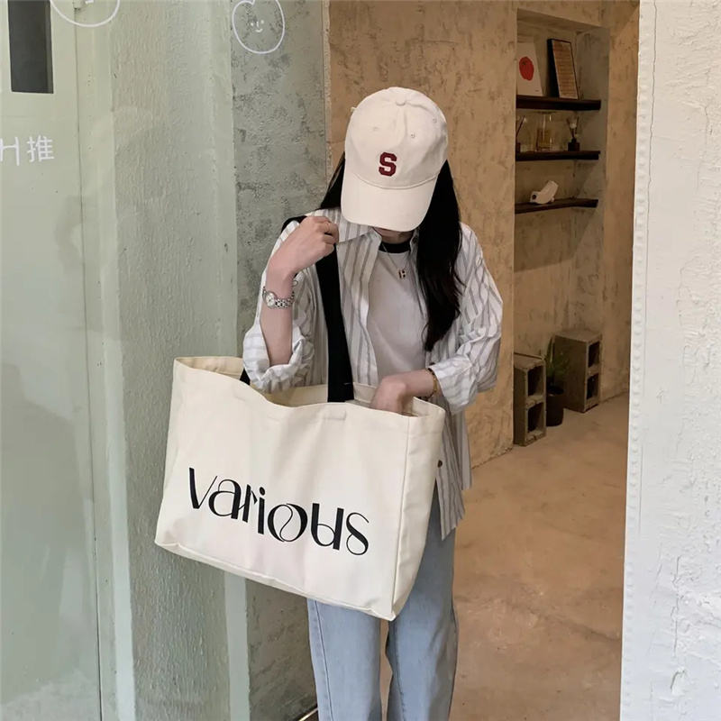Bolsa de Hombro Grande a Rayas para Mujer, Diseño de Moda, Algodón Natural Resistente, Cierre con Cordones, Bolsa de Lona para Estudiantes, 24