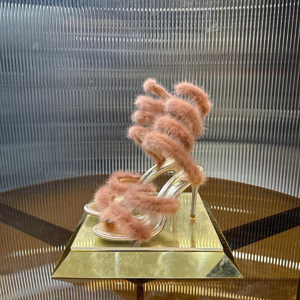 Sandalias de tacón alto de plumas con punta cerrada y tacón de aguja, de diseñador de moda, formales, sin cordones, con encaje de felpa, sexys, para mujer, para discoteca