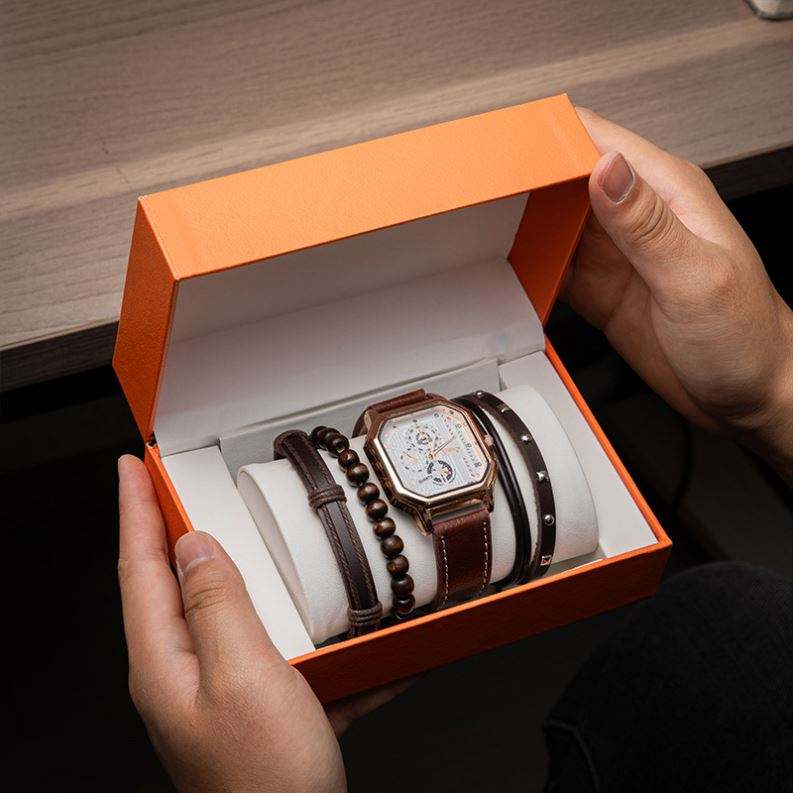 Conjunto de Pulseras Deportivas Casuales de Cuero con Doble Capa y Diseño Cuadrado para Hombre, Regalo de Lujo para el Día del Padre