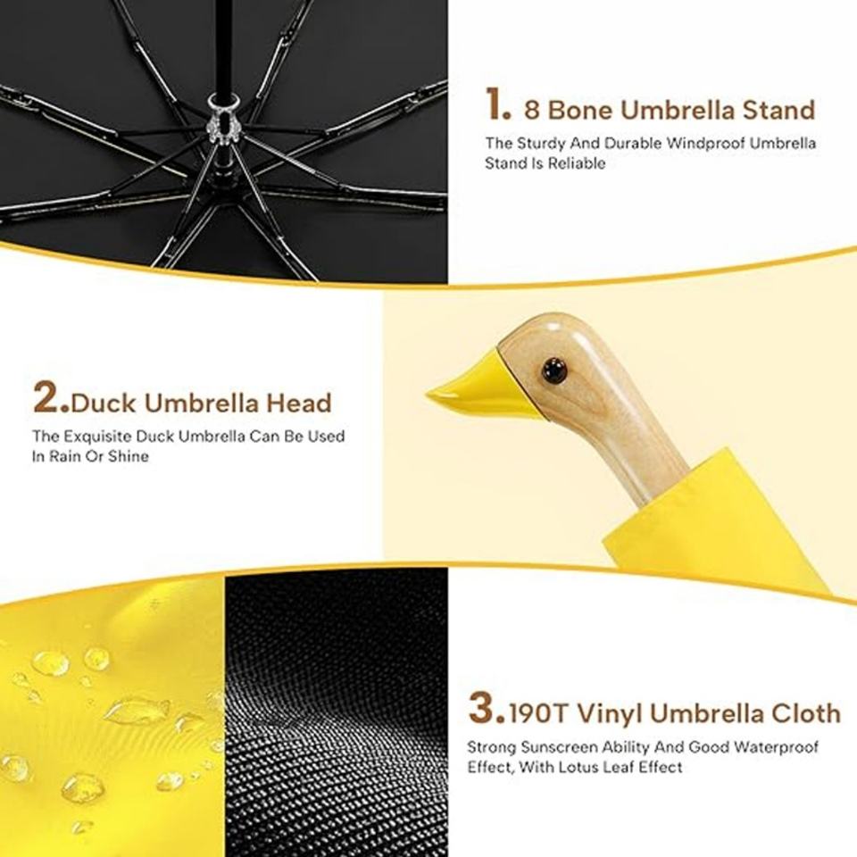 Paraguas Plegable Personalizado con Mango en Forma de Pato, Bonito, Económico y de Buena Calidad, con Cabeza de Pato de Madera, con Logotipo, al por Mayor