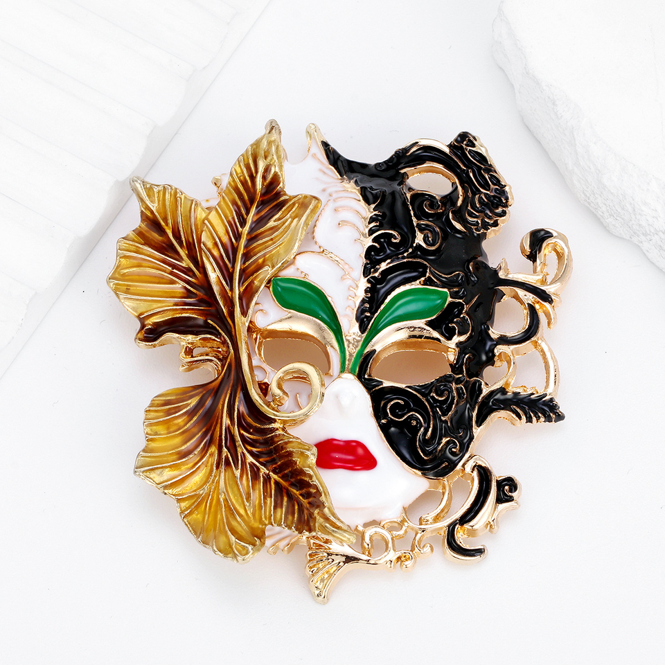 Broche de máscara de esmalte de moda, broche de máscara de alivio Retro, insignia de fiesta de boda para mujer, broche de Carnaval de aceite de goteo de esmalte de industria pesada