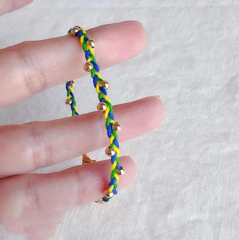 Bandera de moda pulsera de cuerda trenzada hecha a mano de acero inoxidable Cuenta de oro ajustable pulsera de banderas de países africanos colombianos