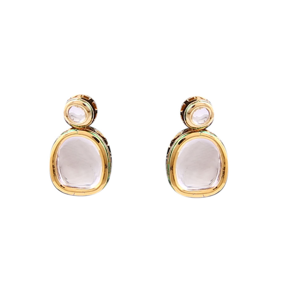 Pendientes Largos con Diseño de Piedras Limpias Inspirados en el Estilo Polki, Acabado Duradero para Usar en Ocasiones Festivas