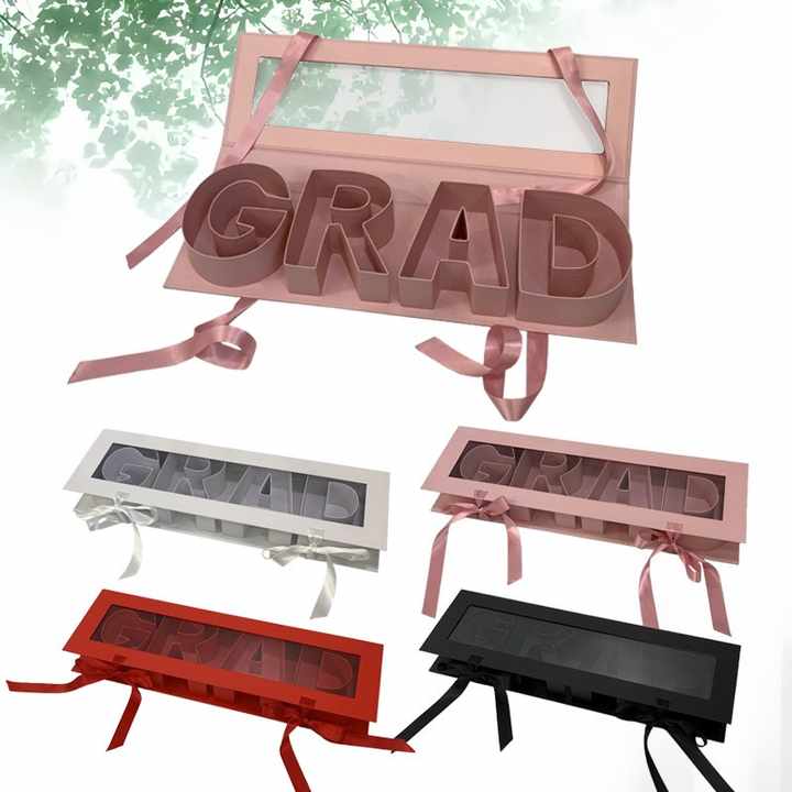 Caja de Regalo de Graduación con Diseño de Letras GRAD y Ventana para Flores, Caja de Papel Rígido Plegable 3D para Floristería
