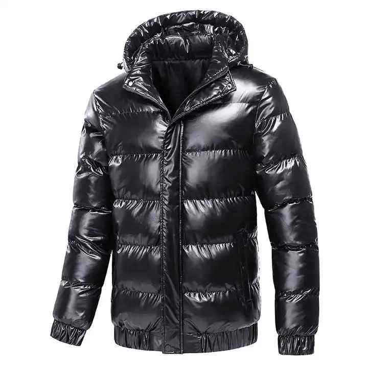 Chaqueta de Plumón de Ganso de Moda, Chaqueta Acolchada Brillante con Capucha para Hombre, Chaqueta Acolchada con Logotipo Personalizado