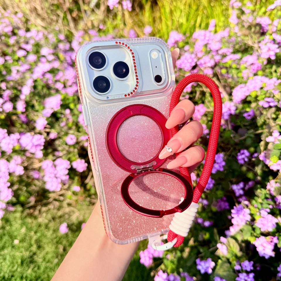 Funda para Teléfono con Diamantes y Degradado de Color para iPhone 17 Pro Max, 16, 15, 14, Magnética, Inalámbrica, con Soporte Giratorio de 360°