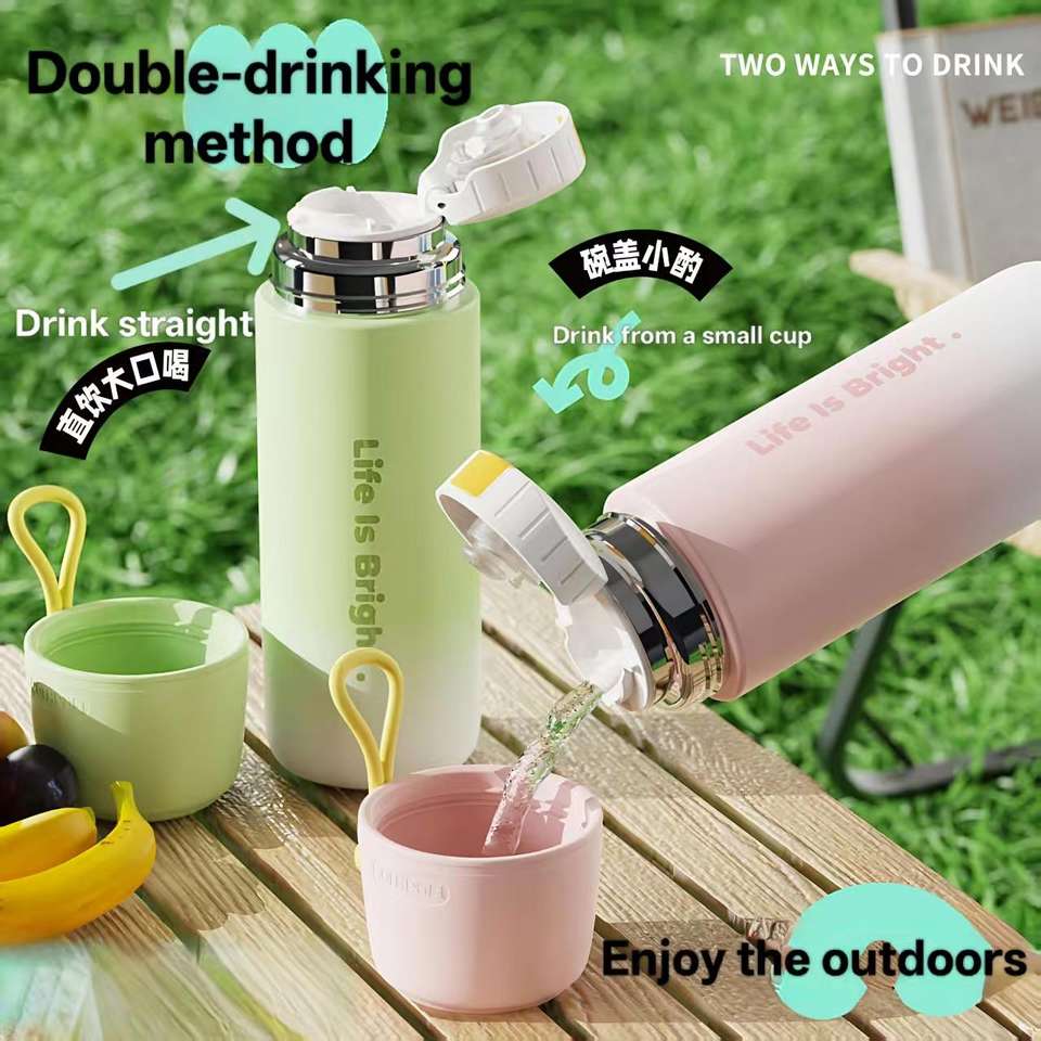 Botella de vacío portátil para estudiantes de Color degradado a la moda con vaso portátil de botella de aislamiento de 500 de acero inoxidable 316 ml