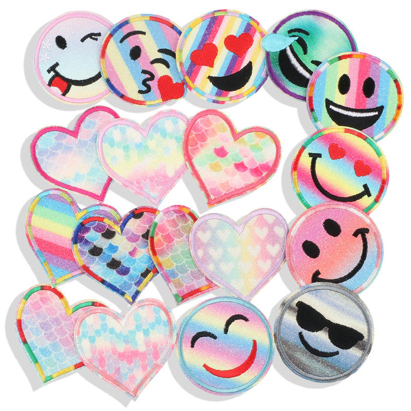 Moda degradado color hierro en bordado brillo corazón sonrisa parches apliques para ropa bolsa sombrero
