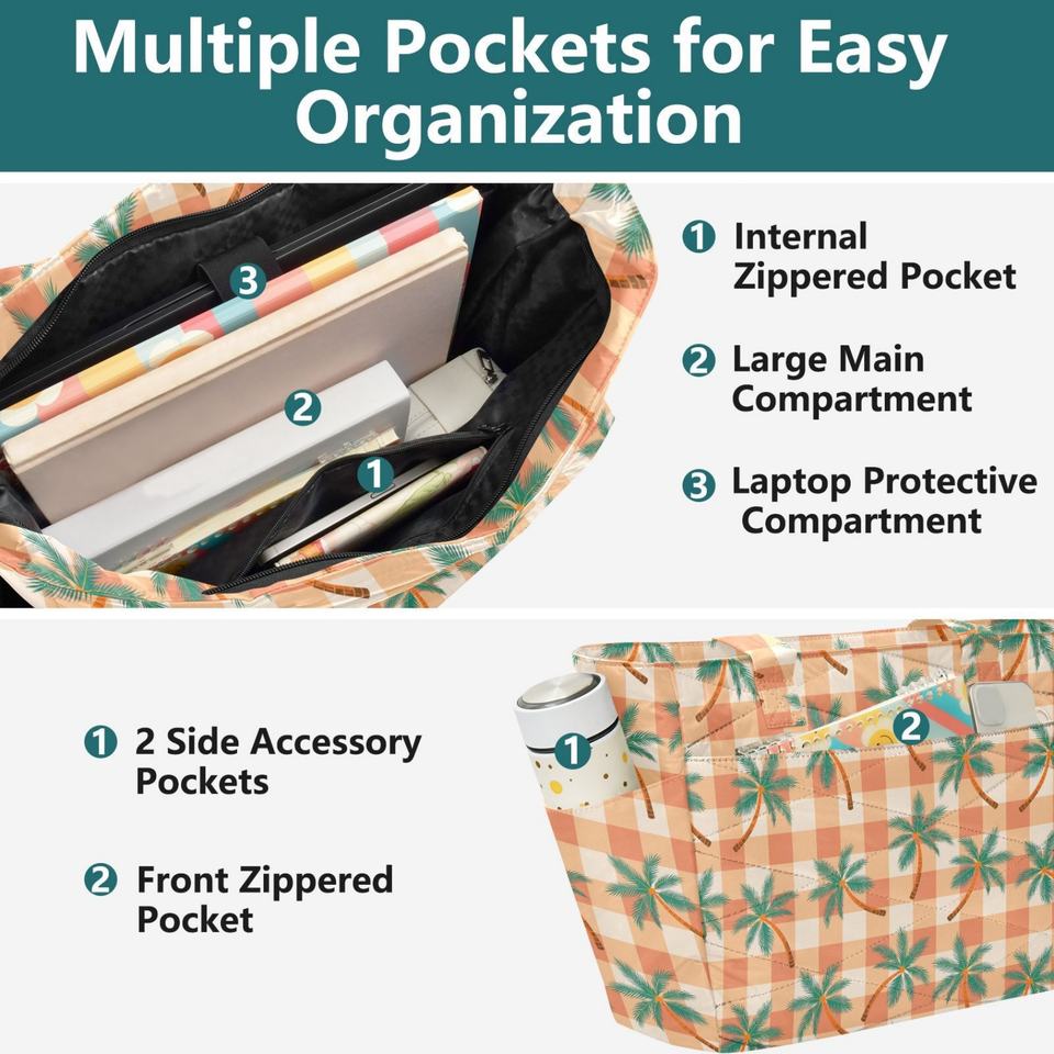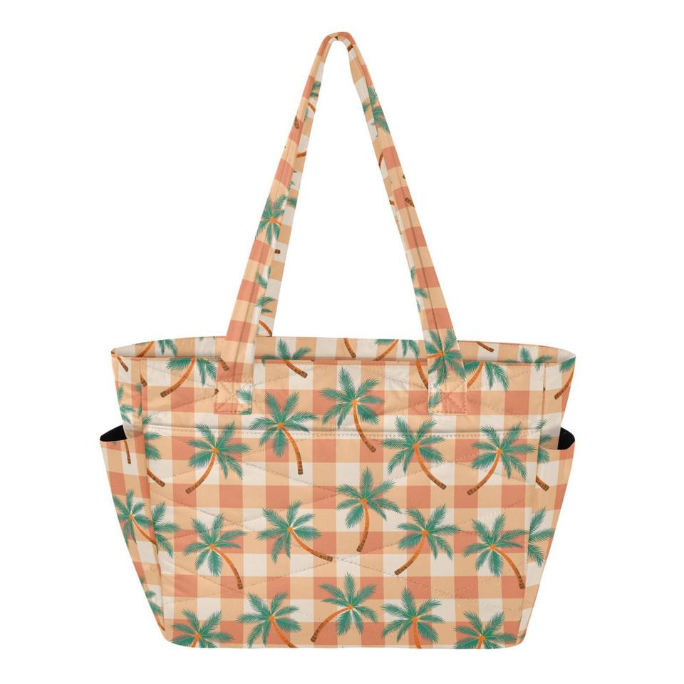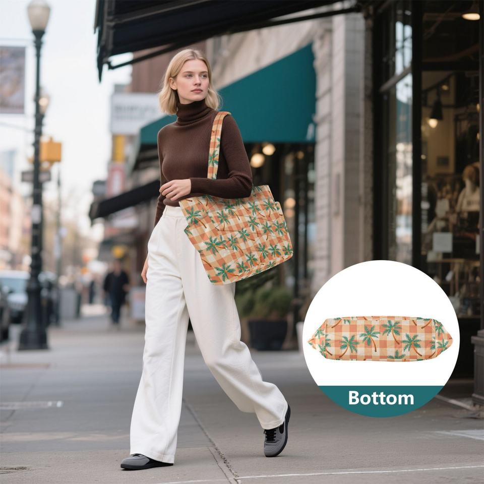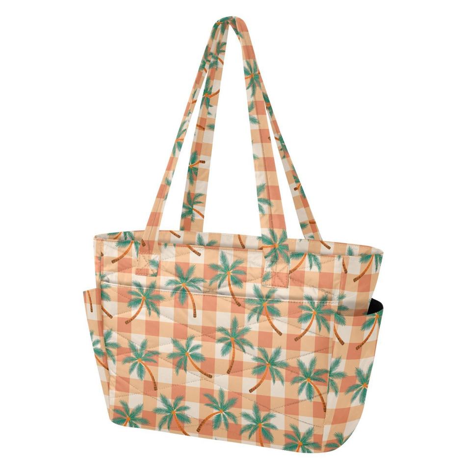 Bolso de Mano de Moda con Estampado Personalizado de Palmeras, Bolso Tote Grande de Poliéster Acolchado para Mujer, Bolso de Hombro con Bolsillos Laterales