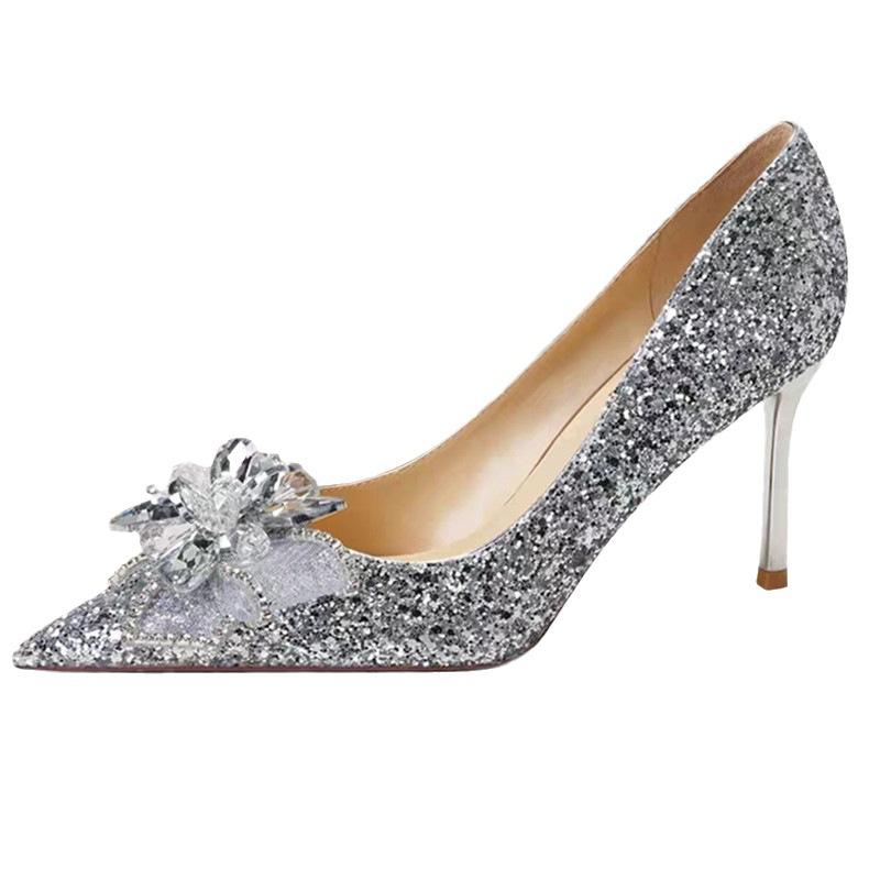 Tacones Altos de Moda para Primavera y Otoño, con Punta Fina y Lentejuelas Florales, de Lujo Ligero, para Bodas, Damas de Honor y Eventos Especiales