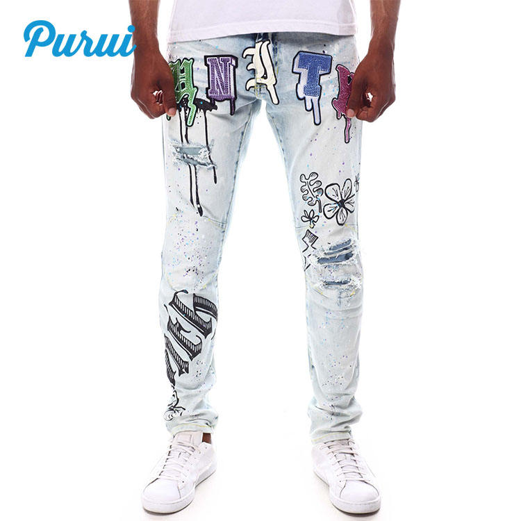 Jeans de Moda para Hombre, de Alta Calidad, Elegantes y Ligeros, con Pedrería, Diseño Personalizado con Letras y Logotipo