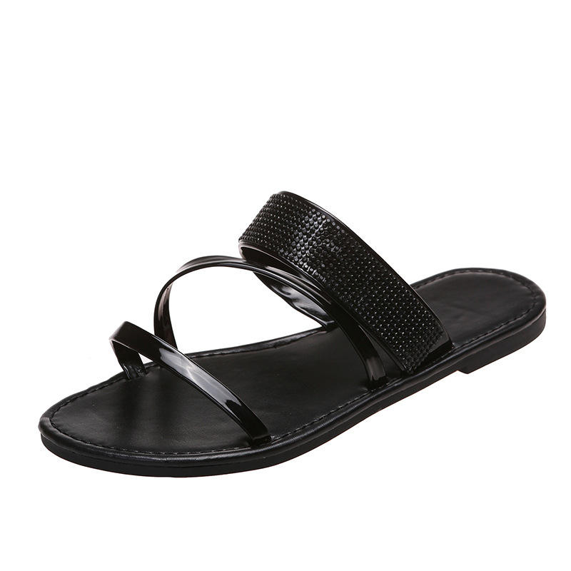 Sandalias Planas de Moda para Mujer, Diseño Veraniego, con Tira de Pedrería, Económicas, Talla Grande, Calzado Informal para Exteriores
