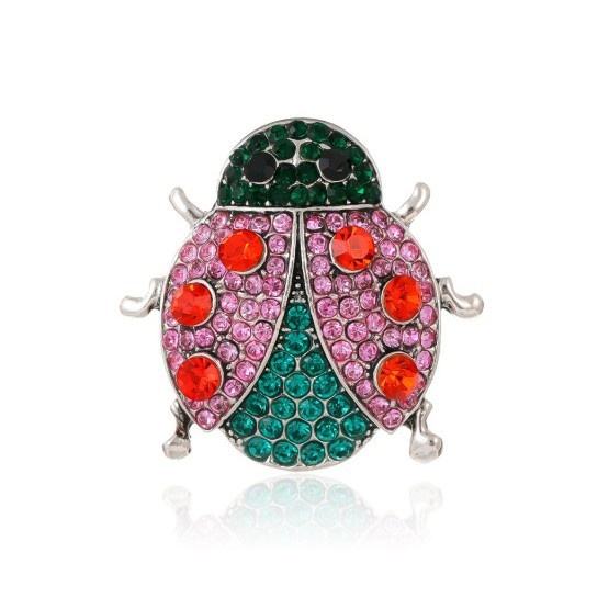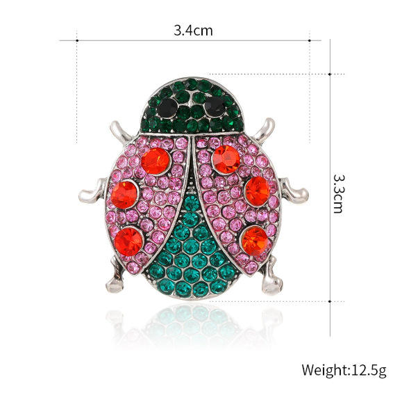 Broche de Mariquita de Moda, Broches de Cristal con Pedrería, Alfileres de Aleación con Diseño de Dibujos Animados, Corsage de Animales, Accesorios de Ropa para Mujer