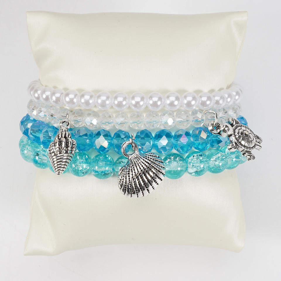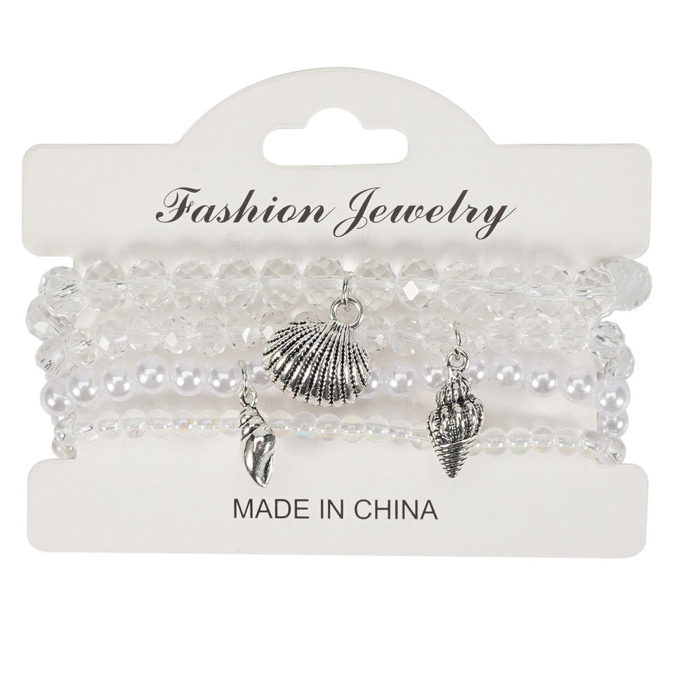 Pulseras de Moda con Cuentas y Dijes de Concha, Elásticas de Varias Capas, Unisex, Regalo, Hechas en China
