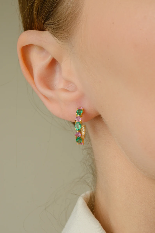 Piedras preciosas:Esmeralda natural y zafiro rosado