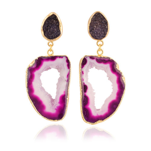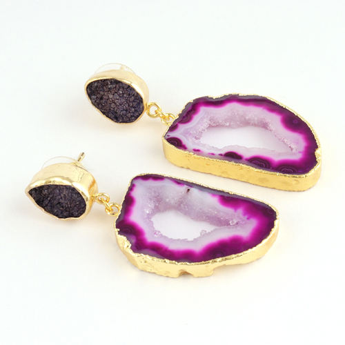 Piedras preciosas:Rebanada de Geode púrpura y azúcar negro Druzy