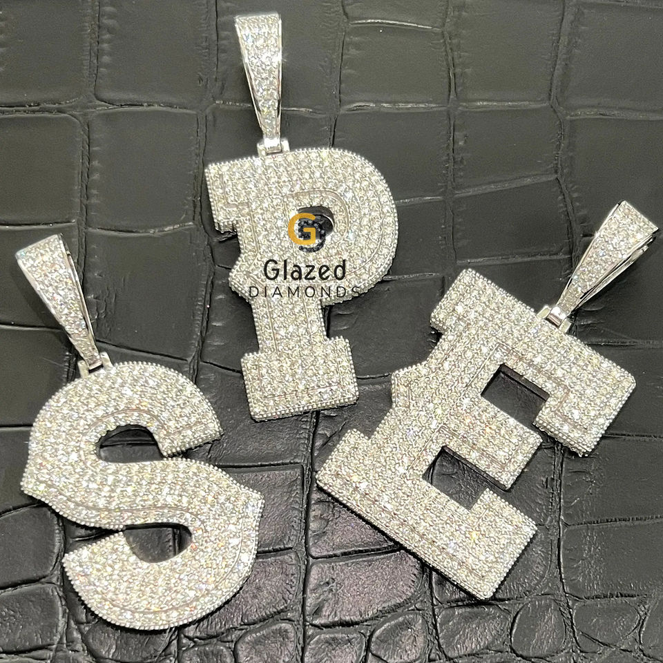 Moda totalmente helado personalizado letra inicial Hip Hop 4 TCW brillante laboratorio crecido VVVs claridad diamante fiesta 925 plata esterlina