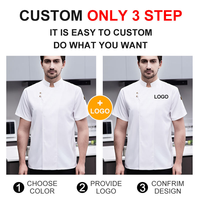 Abrigo de cocina de moda de manga corta comida rápida Unisex ropa de cuello alto personalizable algodón Chef uniforme chaqueta ropa de cocina