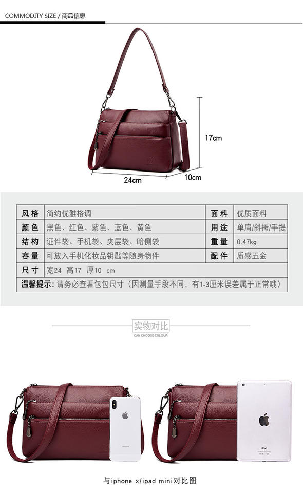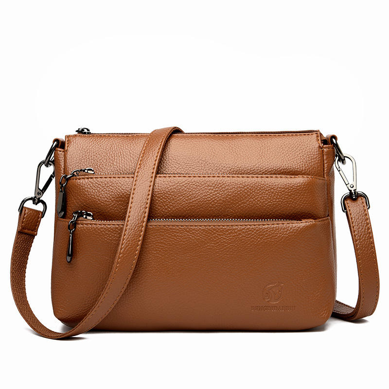 Bolso de Hombro de Cuero Suave de Gran Capacidad y Doble Capa Versátil para Mujer