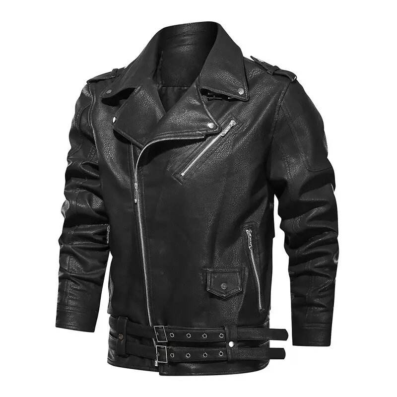 Chaqueta de Motociclista de Cuero para Hombre, Ropa de Exterior de Manga Larga, Chaqueta de Motociclista de Cuero para Hombre
