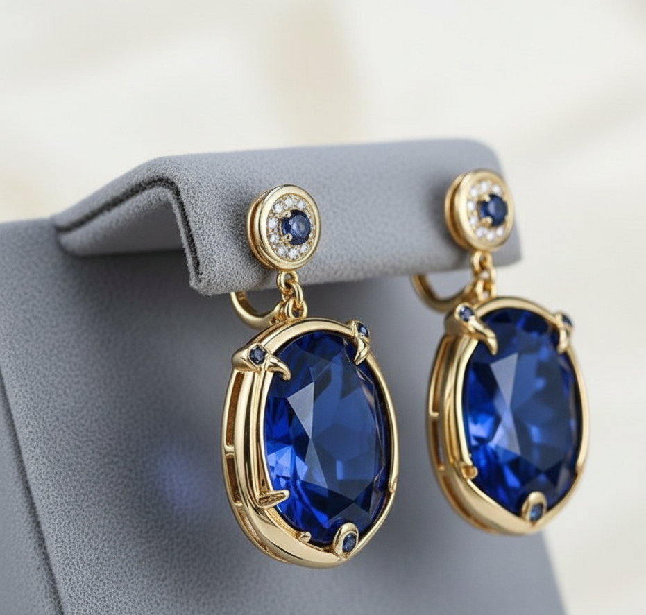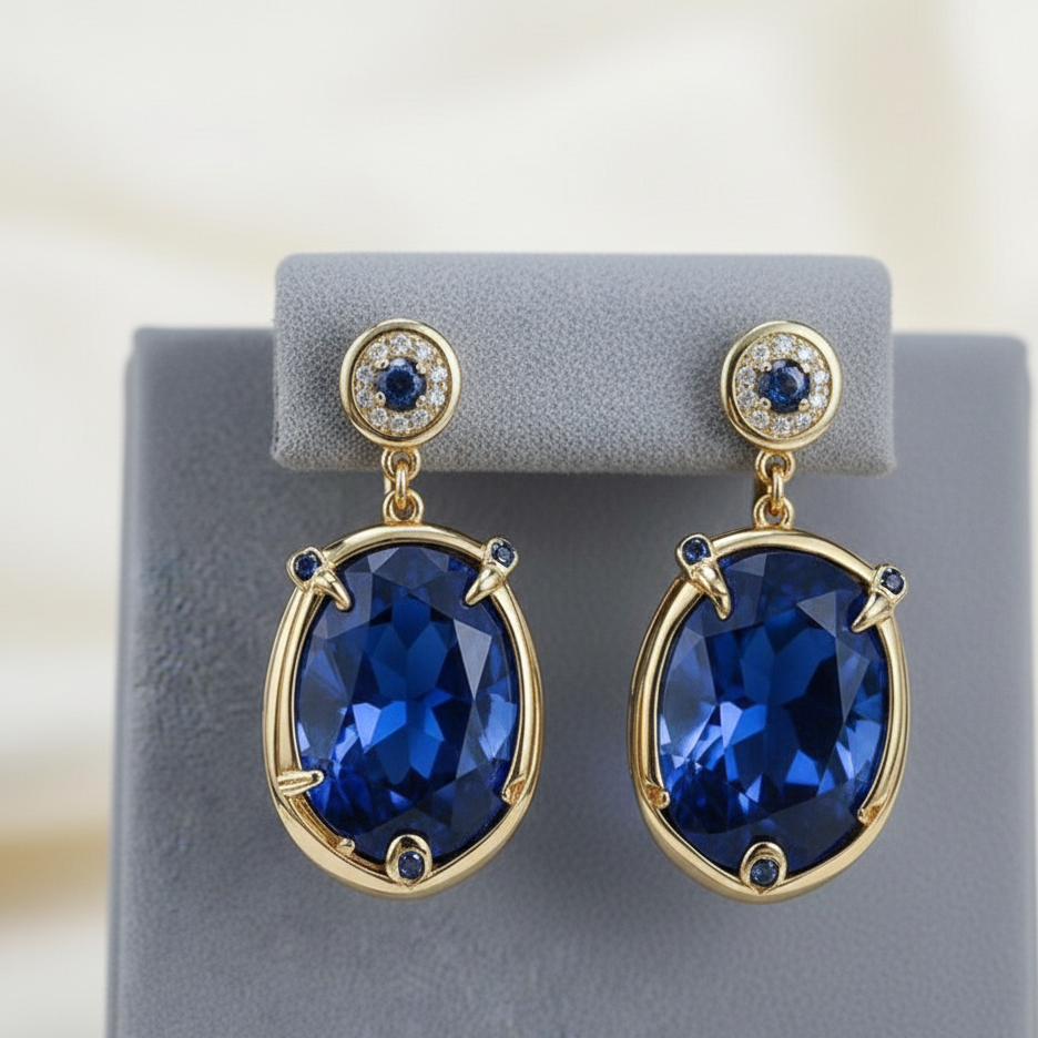 Nombre del Producto:Pendientes colgantes de circonita cúbica azul Hydro redondos de 6 mm y ovalados de 15*20 mm