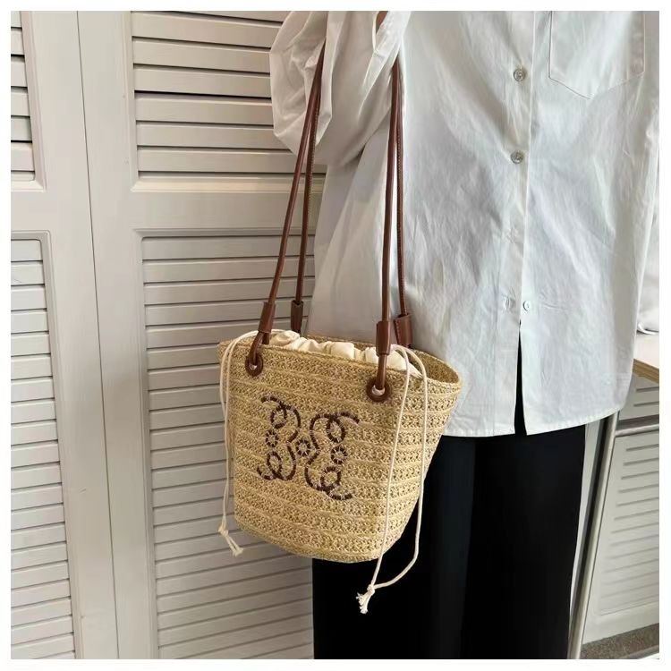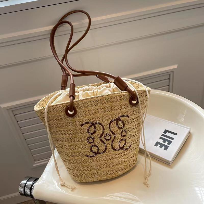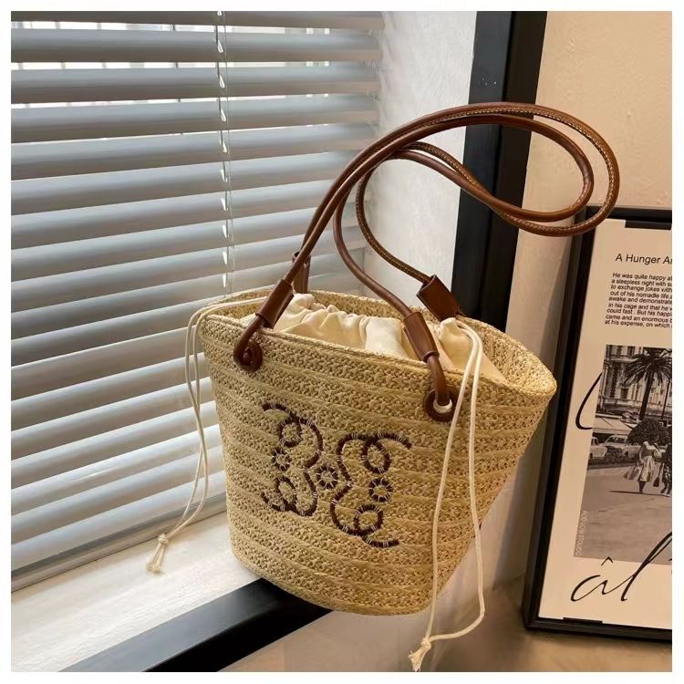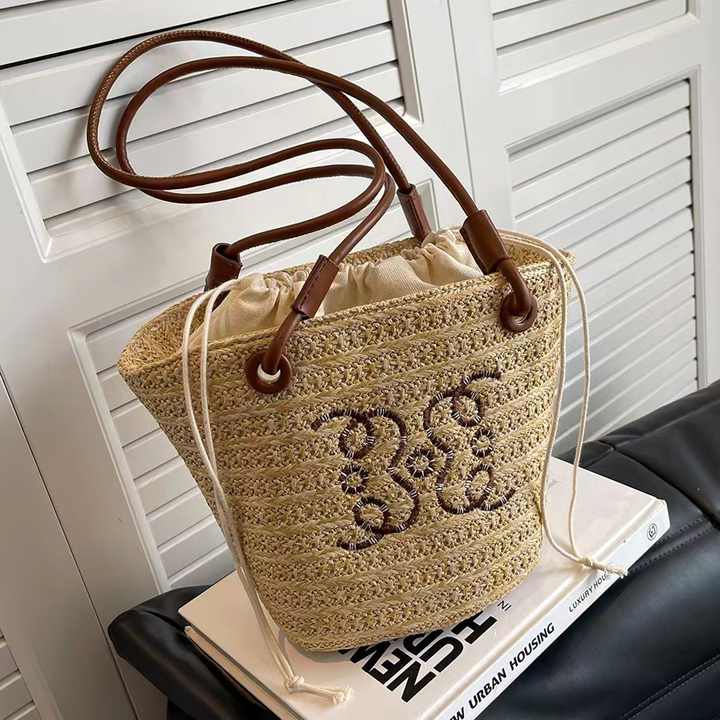 Bolsos de hombro de lujo a la moda para mujer, gran capacidad, para vacaciones, playa, con cordón, bolsos tejidos de paja, bolsos de mano para mujer